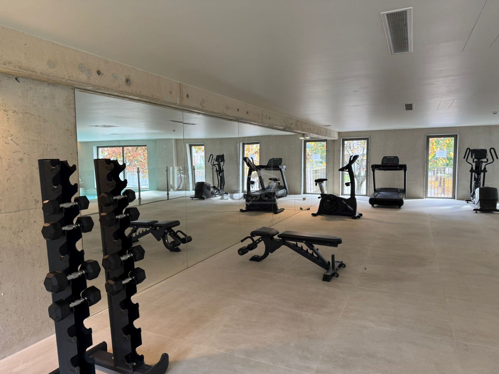 Piscina interior, ginásio e parque infantil.